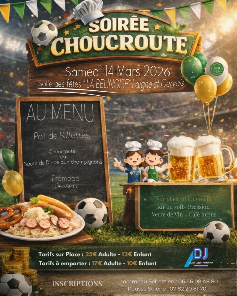La section Football organise sa soirée Dansante le samedi 14 Mars 2026 à la salle des Fêtes la Belinoise